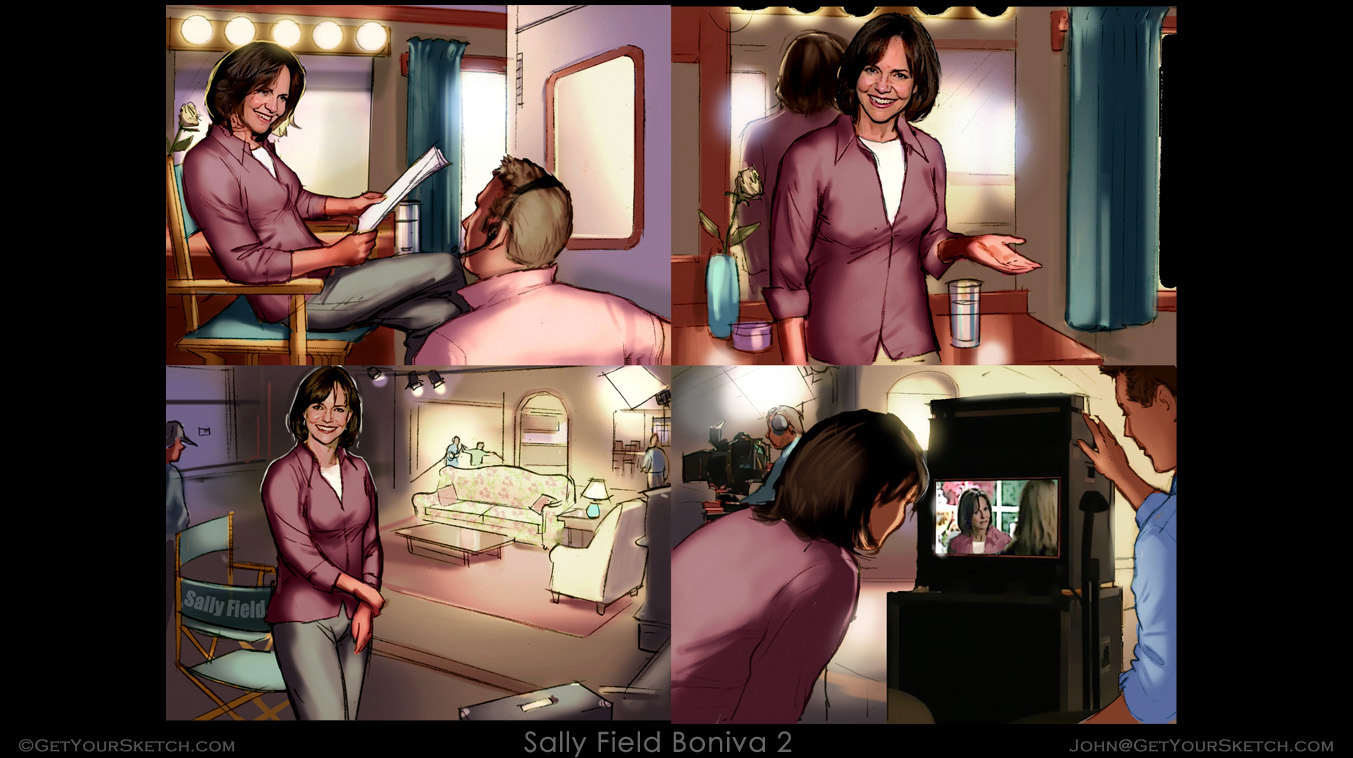 The most important thing to acheive when casting celebrities in a storyboard is undeniable recognition. The reason is two-fold. If the idea is testing, there needs to be no doubt in the focus group's mind as to who it is supposed to be, and secondly, the celebrity will often see the storyboard prior to giving approval to go ahead.